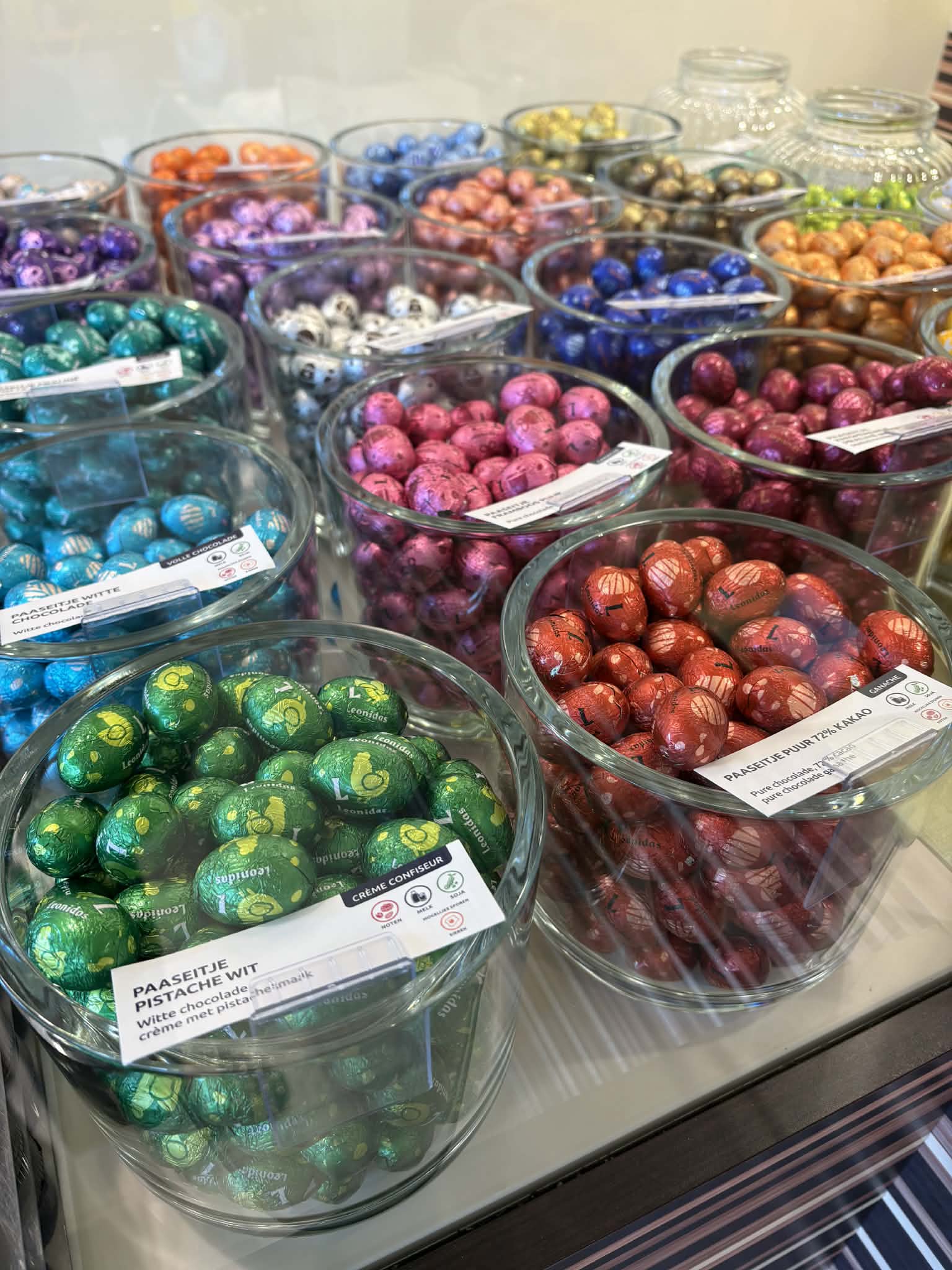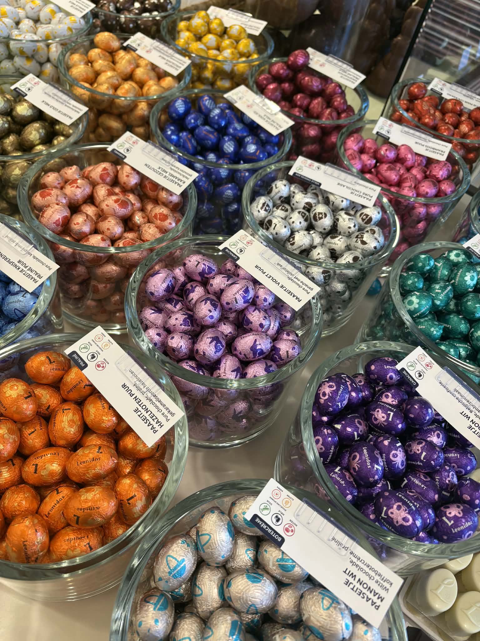 Pasen doet zijn intrede bij Leonidas in een lenteachtige sfeer vol lekkernijen. Ontdek in onze winkels een feestelijke en kleurrijke collectie: iconische kleine paaseitjes, figuren, vulbare eieren en chocoladecreaties, gemaakt met het vakmanschap van onze Meester-Chocolatiers.